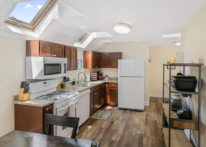Une cuisine complète avec un lave-vaisselle est disponible dans le cadre des équipements indépendants de ce logement. Cet appartement Great For Families Dt Libertyville Near Naval Base se trouve non loin de l'arrêt de bus Milwaukee & Condell Medical Center.